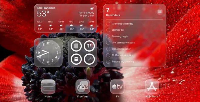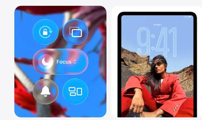 界面方面,iPadOS 26也使用了「Liquid Glass」液态玻璃的全新设计风格,采用大量的半透明液态玻璃元素,包括锁屏、主屏幕、控制中心、应用程序等界面。