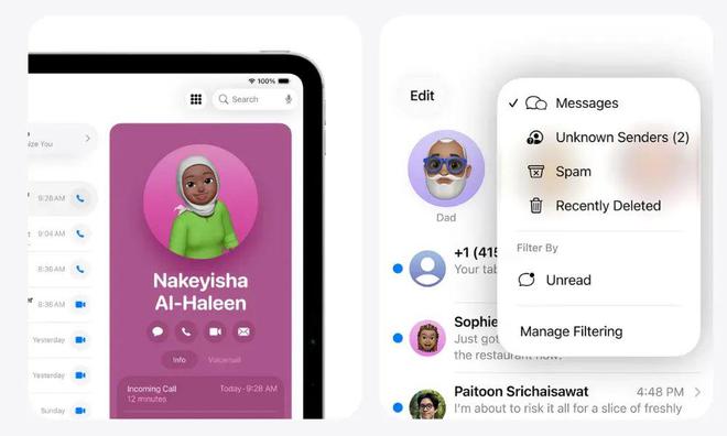最后,苹果还宣布Phone app 登陆 iPad,用户可以在Pad端拨打和接听电话,并获得来电筛选、按住辅助和实时翻译等功能。