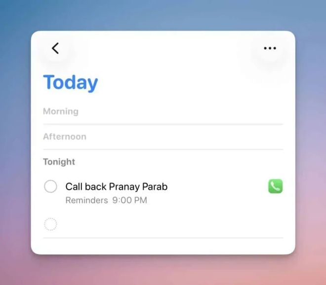与此同时,这个提醒不仅存在于电话APP中,其也会出现在“提醒事项”App 的“今天”标签页中,且提醒内容中还设置了一个快速呼叫按钮,用户直接点击推送通知或提醒事项 App 中的按钮来回拨电话。