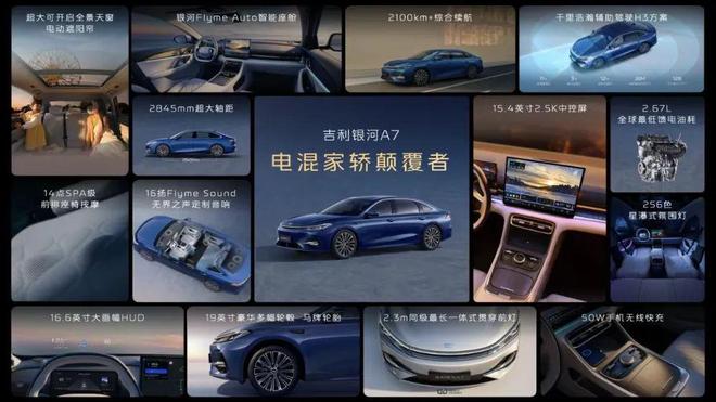 银河A7是GEA新能源架构打造的首款插混轿车,并且率先搭载了雷神AI电混2.0,并拥有银河Flyme Auto智能座舱系统。