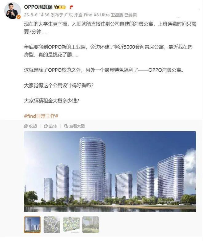 OPPO Find 系列产品负责人周意保日前发文称,自己年底要搬到 OPPO 新的工业园,旁边还建了将近 5000 套海景房公寓。