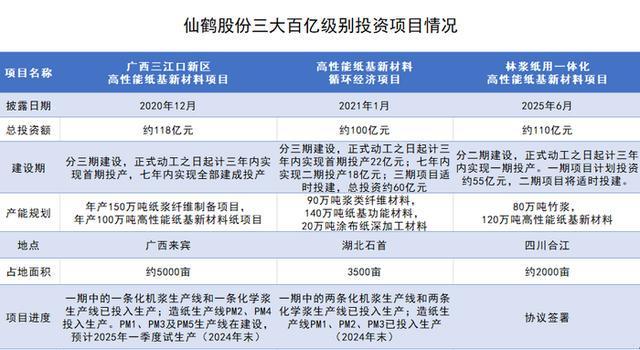 仙鹤股份三大百亿级别投资项目情况制图:界面新闻记者整理