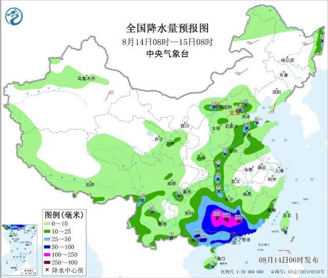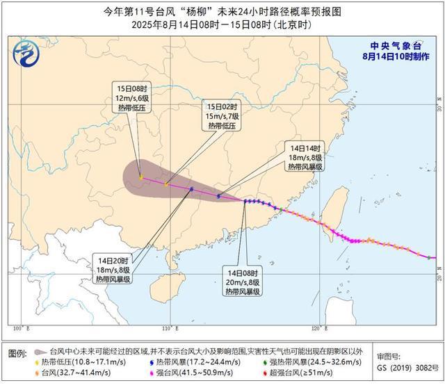 受“杨柳”影响,今天,广东大部、广西大部、福建东南部、江西南部、湖南中南部和西北部、贵州东部等地有大到暴雨,部分地区大暴雨,广东北部、广西东北部、湖南南部、江西西南部等地局地有特大暴雨(250~280毫米)。上述部分地区伴有短时强降水(最大小时降雨量20~50毫米,局地可超过70毫米),局地有雷暴大风等强对流天气。