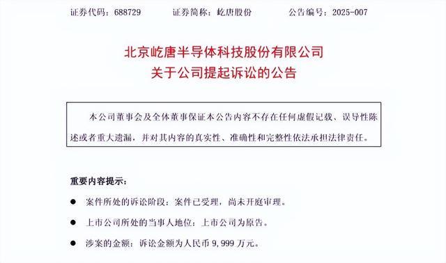公告还表示,截至本公告披露日,该案件已立案,尚未开庭审理。屹唐股份表示,本次诉讼不会对公司经营方面产生重大不利影响,也不会影响公司正常生产经营。最终实际影响将取决于法院生效判决结果。