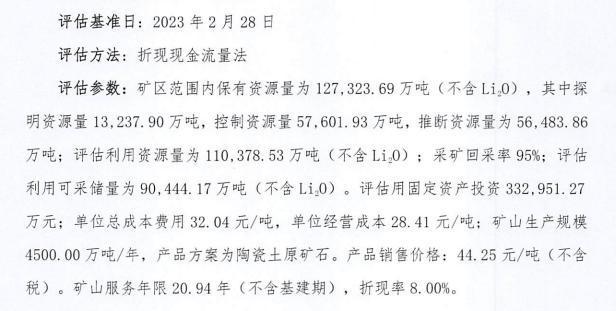 看起来该矿区储量相当丰厚,但2023年《江西省宜丰县圳口里-奉新县枧下窝矿区陶瓷土(含锂)矿普查探矿权出让收益评估报告书》中也明确指出,上述储量数据中并不含氧化锂。