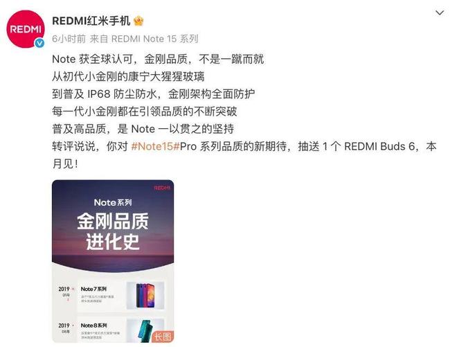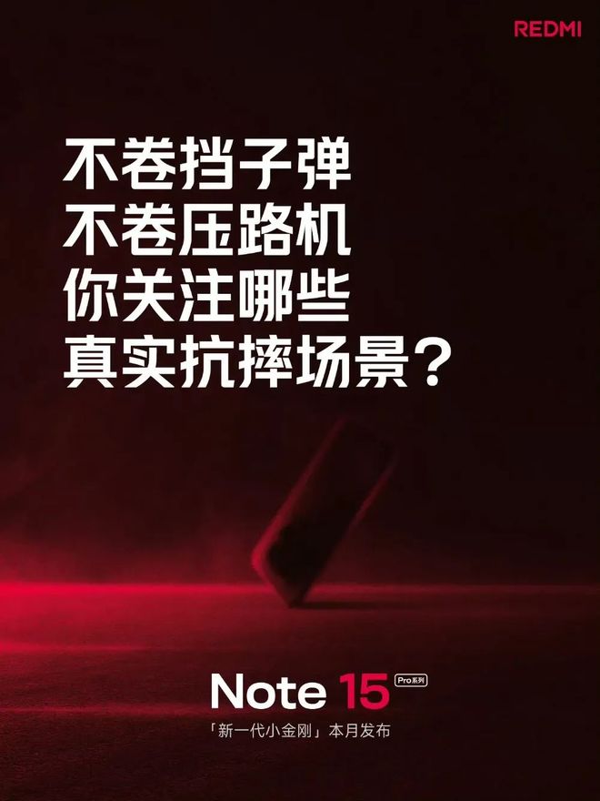 今天,REDMI开始对Note 15 Pro 系列的耐用能力进行预热,官方消息表示: