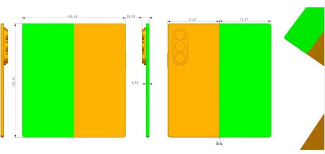 同时,结合CAD文件来看,三星Galaxy Z Fold 7后置三摄系统,每颗镜头配有独立环形设计,排列于垂直相机岛上。