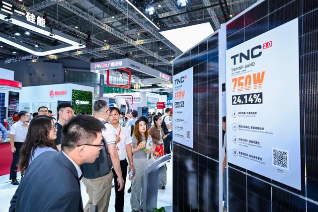 在2025SNEC上,N型技术仍然是主角。通威集团推出的TNC 2.0组件,采用N型TOPCon技术路线,集成908无主栅技术、TPE选择性发射极技术、Poly Tech多晶硅表面处理工艺等多种通威自主研发的核心技术,充分解锁了N型组件潜力,拓宽了组件效能边界,实现了组件效率、功率、双面率的同步提升。