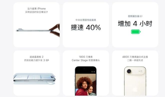 据苹果公司硬件工程高级副总裁John Ternus称,打造一款兼具轻薄和耐用的手机需要多项突破,包括先进的材料、超瓷晶保护、巧妙的内部结构以及高效的Apple芯片。