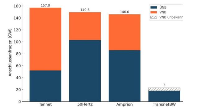 根据德国电力备用服务市场的统一交易机构Regelleistung-Online平台的估算,德国四家输电系统运营商和Edis、Westnetz和Mitnetz 这三家配电系统运营商的储能系统申请并网的总装机容量就已经达到470.5GW,这意味着目前申请总量远超500GW。
