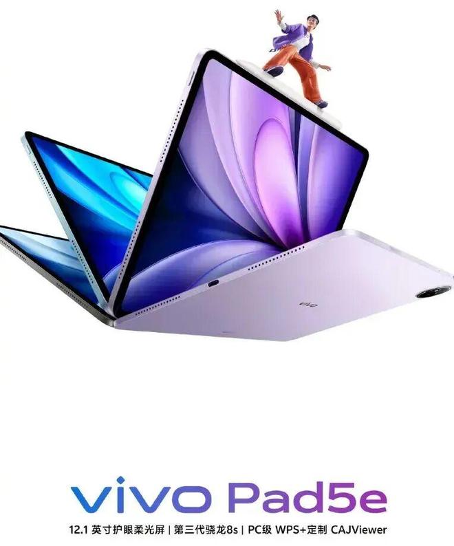 vivo Pad5e 平板搭载 12.1 英寸柔光护眼屏、第三代骁龙 8s 芯片,还有 PC 级 WPS + 定制 CAJViewer。