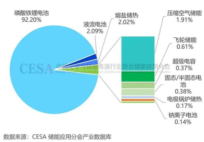 图 2025年1-8月新型储能各技术路线新增装机功率占比