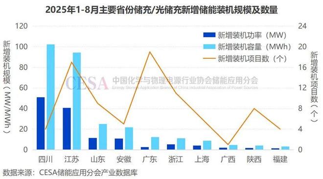 据CESA储能应用分会不完全统计,2025年1-8月,国内共有109个储充/光储充新增并网项目,数量同比增长81.67%,配储规模达137MW/295MWh,规模同比增长194.32%(功率)/223.1%(容量)。