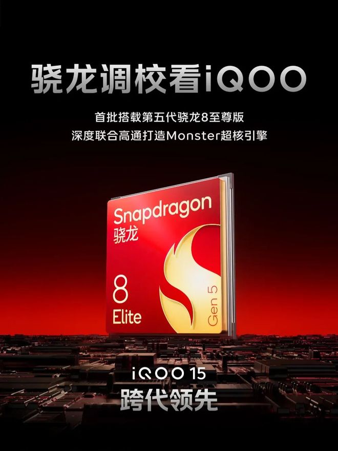 今天,iQOO手机官宣,全新iQOO15将首批搭载第五代骁龙8至尊版,深度联合高通打造Monster超核引擎。