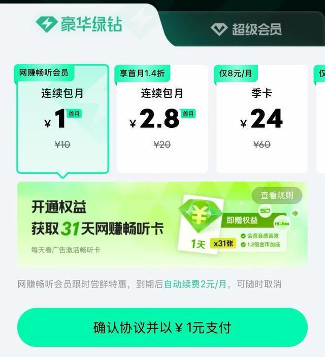 近日,腾讯QQ音乐上线的一项豪华绿钻“网赚畅听会员”,被质疑为“付费看广告”。用户充值后,每日仍需观看4条广告才能解锁会员权益。