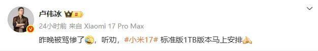 现在看起来小米17系列首销卖的非常不错,但在昨日卢伟冰发文称“昨晚被骂惨了”。