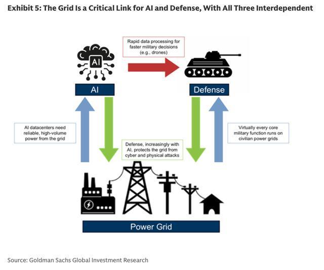 高盛分析师认为,电网是美国人工智能与国防领域最关键的“枢纽环节”,三者相互交织,使电网成为国家安全优先事项。