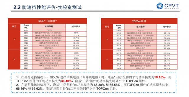 结果显示,“三防”组件在模拟鸟粪和积灰遮挡的情况下,功率损失较TOPCon组件降低6%,在模拟电线杆等斜对角遮挡的情况下,功率损失较TOPCon组件降低10%。
