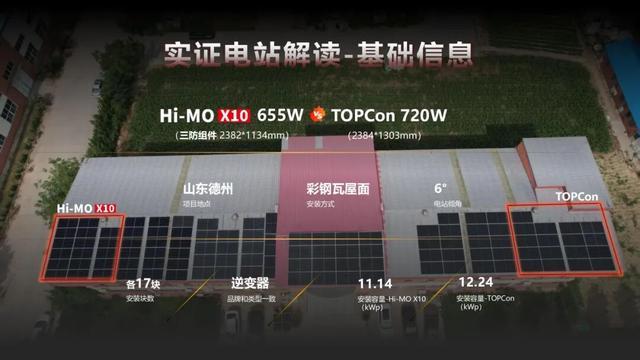 无独有偶,另一家山东新能源企业——山东聚辉新能源集团有限公司也在屋顶自行建设两座实证电站,通过四个月的实证测试,最终发电数据显示,Hi-MO X10“三防”组件比TOPCon组件的单瓦平均发电增益高2.05%,单位面积增益达7.27%,而由于时间短,防积灰和衰减率的优势还没体现出来。“有了这样实实在在的数据,我们给客户介绍产品时,就更有信心和底气了”公司负责人张清波说。