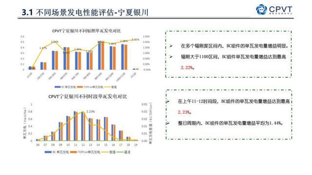 此外,从CPVT银川户外实证基地的数据可以发现,“三防”组件的单瓦发电量(Wh/kWp)也远优于TOPCon组件,较TOPCon组件的相对增益可达1.42%左右。