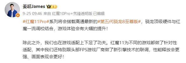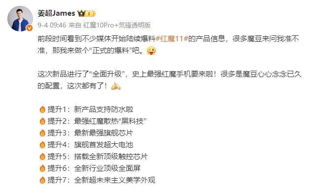 红魔游戏手机产品总经理姜超也对新机进行了多次预热,表示红魔 11系列手机进行了全面升级,是“史上最强红魔手机”,很多用户心心念念已久的配置这次都有了。