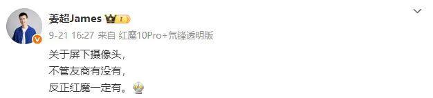 关于屏下摄像头,不管友商有没有,反正红魔一定有。