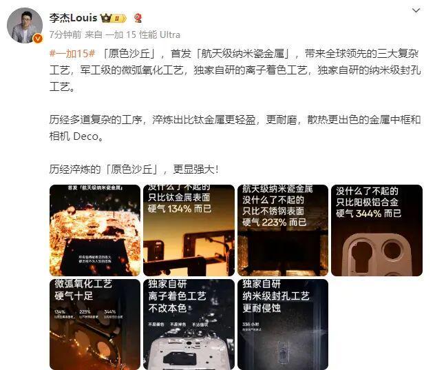 一加15新品原色沙丘配色首发航天级纳米瓷金属中框,超越钛金属硬度与轻量化的新境界