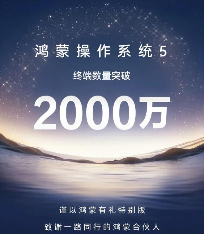 与此同时,华为终端今日也发布消息,宣布 HarmonyOS 5 终端设备数量突破 2000 万,将推出“鸿蒙有礼特别版”,覆盖吃喝玩乐等多项专属权益。