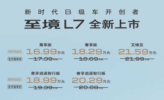 别克至境L7正式上市,限时权益价起价16.99万元