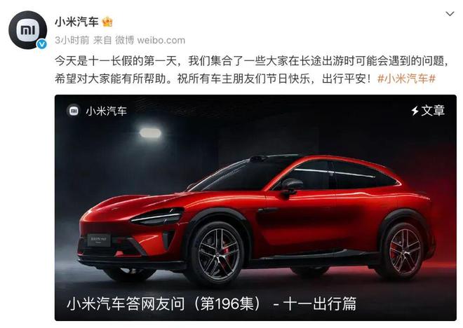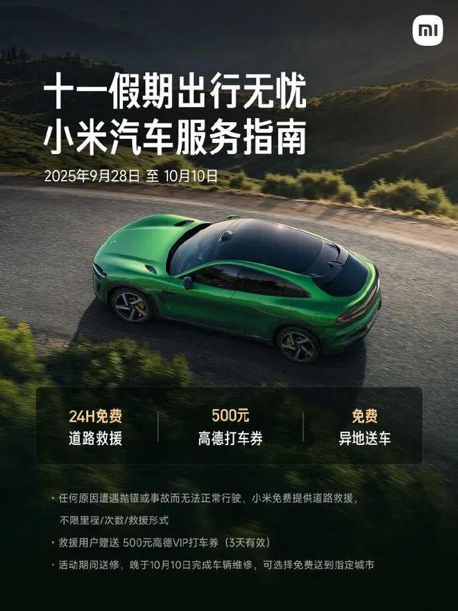 与此同时,小米汽车还公布了「十一假期出行无忧」服务。