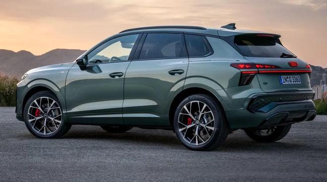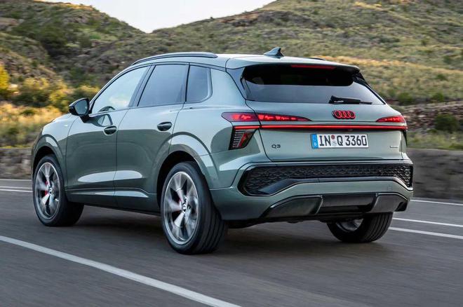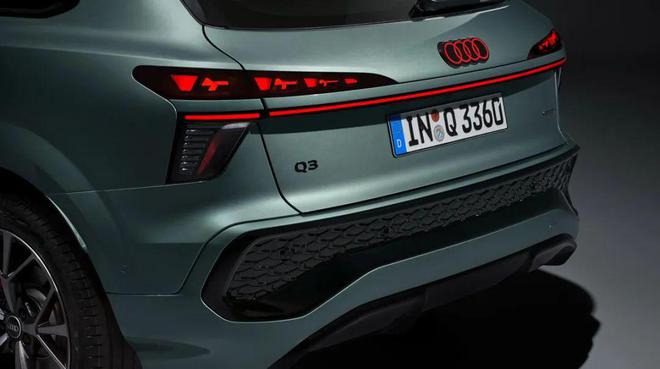 侧面来看,整车看起来力量感较强。尾部方面变化较大,新车采用时下流行的贯穿式LED灯带,灯带上部为发光品牌LOGO,并且新车还可选装数字OLED尾灯,这也是奥迪Q3首次搭载该技术。而黑色网格状设计的后包围则与前脸相呼应。
