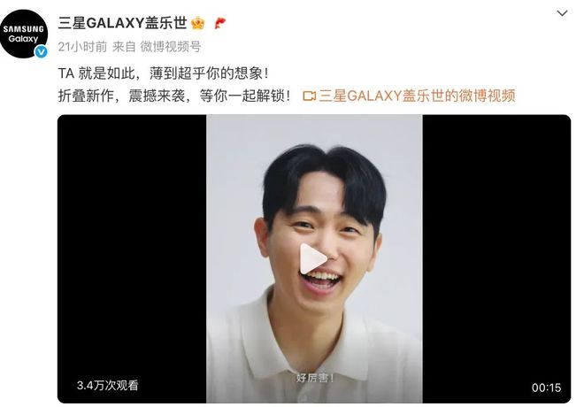 今天,三星GALAXY盖乐世官方账号发布了宣传视频为折叠新作进行预热。