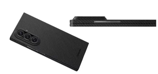 从这些图片中可以看到机身的超薄设计,以及明显凸起的相机。三星 Galaxy Z Fold7 佩戴手机壳后,从横切面角度来看,可以看到相机凸起的高度,基本上和手机单侧的厚度相同。