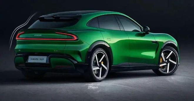 据悉,小米YU7定位“豪华高性能SUV”,更注重比例,长宽高为4999×1996×1600mm,轴距为3000mm。1:3头身比;3x轮轴比,2.1x轮高比,1.25x宽高比,275mm后宽胎,车身自带宽体,有着很强的肌肉感。