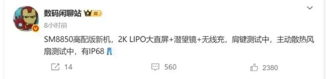 结合相应的消息来看,其中提到的SM8850应该是下一代骁龙 8 至尊版(骁龙8 Elite 2)处理器的代号。这份消息中没有提到详细的产品系列信息,但相关推测认为其指代的是新一代的iQOO数字系列手机,可能会被称为 iQOO 14 或 iQOO 15。