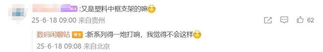 同时,该博主回复网友“又是塑料中框支架的嘛”提问时表示,“新系列得一炮打响,我觉得不会这样”。
