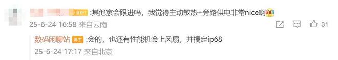 针对其他厂商是否会跟进,他表示“会的,也还有性能机会上风扇,并搞定 ip68”。