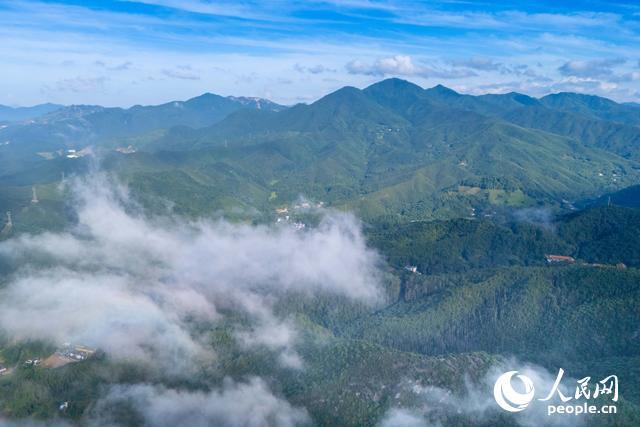 航拍大余丫山,云雾缭绕宛若仙境。人民网 龙楚良摄