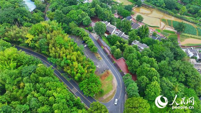 大龙村丫山,通村公路沿线绿树成荫、民宿林立,许多游客驱车前来游玩。人民网 朱海鹏摄