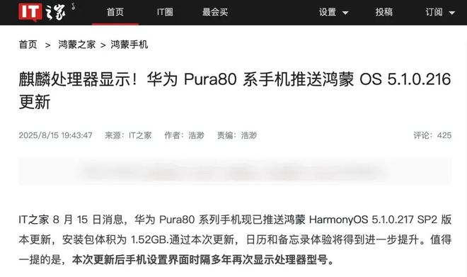 近日,华为 Pura80 系列手机推送了鸿蒙 HarmonyOS 5.1.0.217 SP2 版本更新。