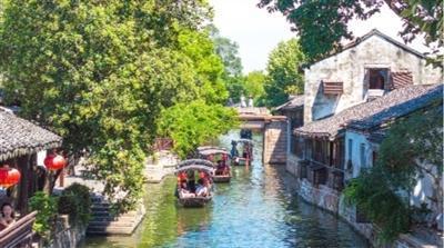 8月13日,浙江省湖州市南浔区南浔古镇船来人往,游客坐船观景,享受水乡风光。