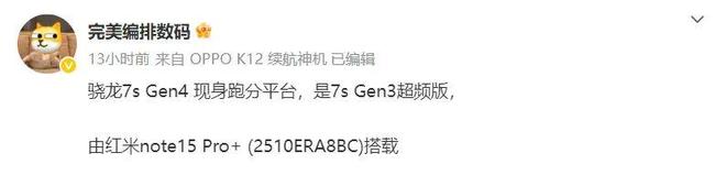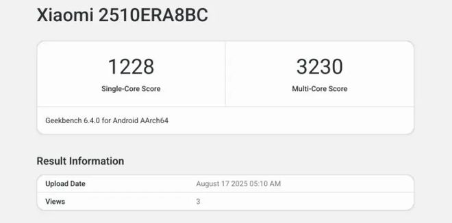 昨日,一款型号为 2510ERA8BC 的小米新机现身跑分平台 Geekbench,博主@完美编排数码 透露为小米 REDMI Note15 Pro+。