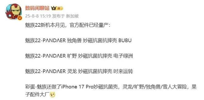 与此同时,魅族还同步推出了多款适配即将发布的iPhone 17 Pro妙磁抗菌保护壳。