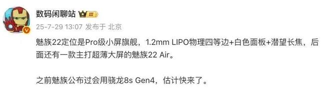 博主@数码闲聊站 以往的爆料中提到,魅族22定位是Pro级小屏旗舰,1.2mm LIPO物理四等边+白色面板+潜望长焦。