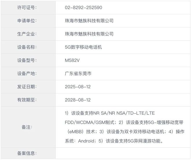 与此同时,有两款魅族手机新品于近日通过了入网认证,型号分别为 M582V、M582Q。