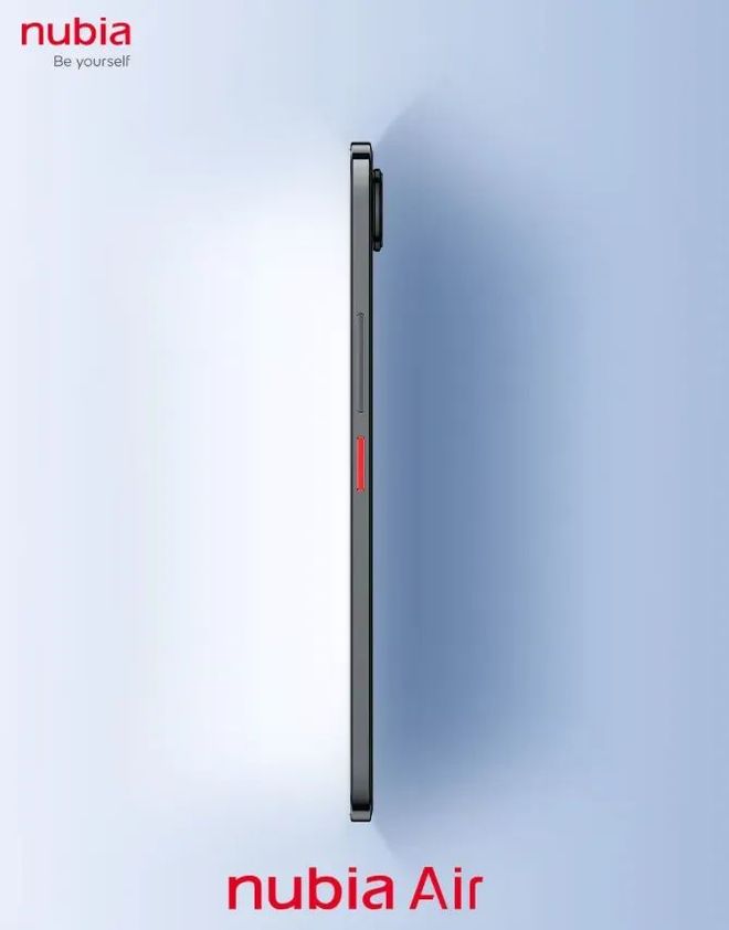 这款努比亚Air以超薄机身为主打方案,爆料中称其厚度仅 5.9 毫米,比此前曝料的 6.7 毫米更薄。