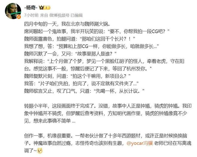 杨奇也在个人账号上表示,《黑神话:钟馗》眼下尚无值得展示的实机内容,待做到能见人时,它理应是一番全新的面貌。