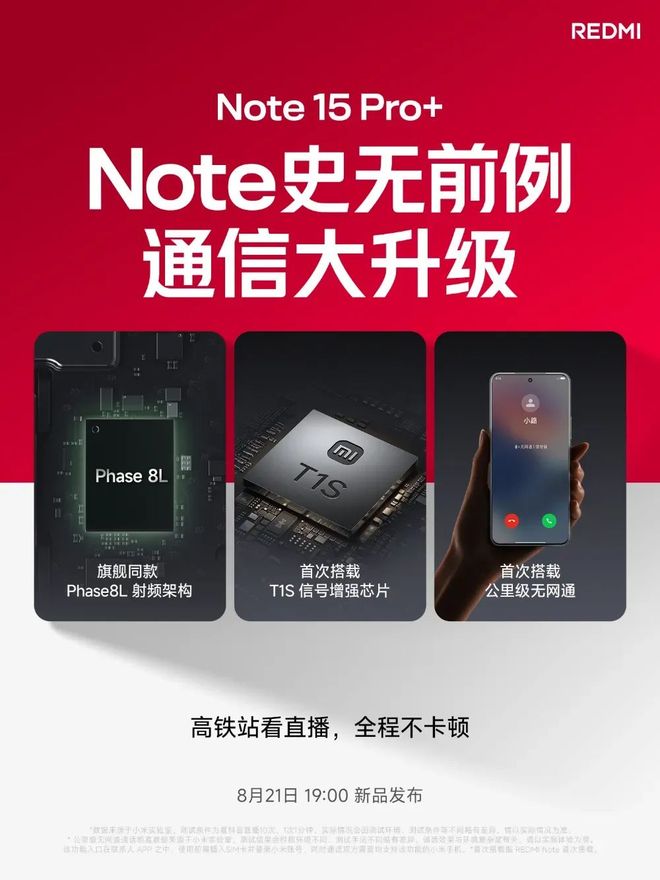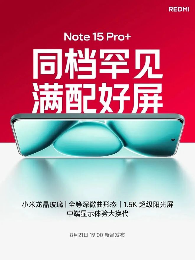 REDMI Note 15 Pro 系列手机将于 8 月 21 日晚 7 时发布。也就是说,明天大家就能够见到这款新机的上市了。