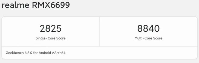 如今随着时间的推进,这款新机的geekbench跑分信息也出现了新的曝光。结合跑分列表来看,这款新机的型号为RMX6699,单核成绩2825,多核成绩8840。