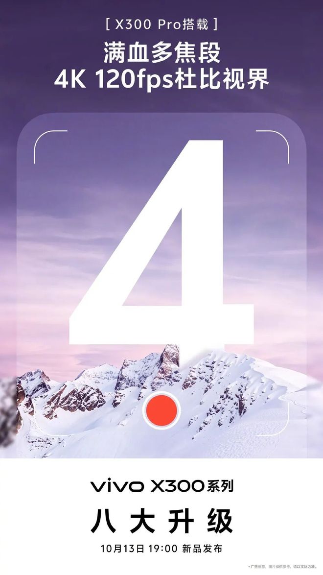 今天,vivo官方介绍称:“用电影质感视频,记录下难忘回忆!vivo X300系列八大升级点之四,满血多焦段4K 120fps杜比视界,超亮眼,超震撼。每一帧,都是鲜活的回忆。”